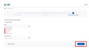 Defina uma nova senha de acesso (com 8 a 70 caracteres, incluindo letras maiúsculas, minúsculas, números e símbolos) e clique em “Continuar”.