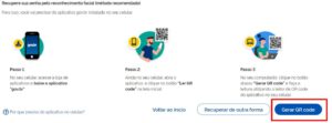 Aqui você encontrará o primeiro método de recuperação, através do QR code, com aplicativo e reconhecimento facial.