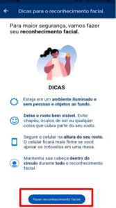 Posicione o rosto de frente para a câmera do celular e siga as instruções na tela para que o sistema confirme sua identidade.