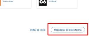 O próximo método de recuperação envolve bancos e, neste caso, você terá que ignorar a opção de recuperação anterior e escolher “Recuperar de outra forma”.